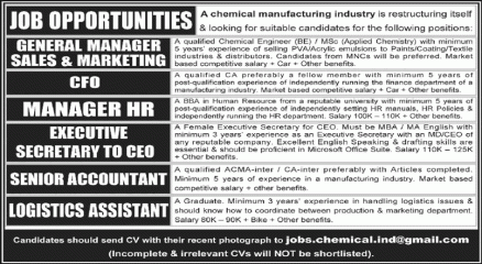 A well-established Chemical Manufacturing Industry in Pakistan has announced multiple job opportunities for December 2025 / 2026. These vacancies were advertised in the Daily Dawn Newspaper on Sunday, 28 December 2025. Applications are invited from qualified, experienced, and competent professionals for senior management, finance, HR, accounts, and logistics positions.