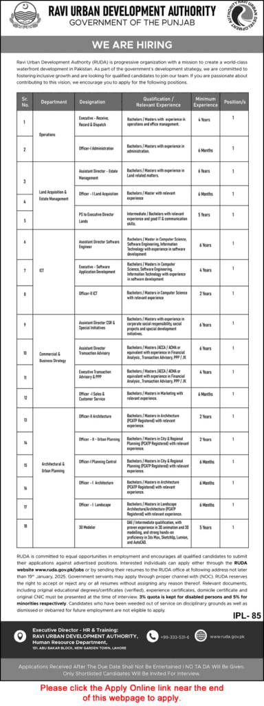 Available Positions in Ravi Urban Development Authority Jobs 2026